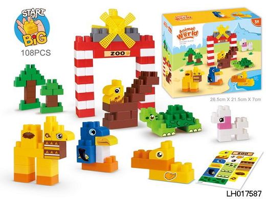 动物世界乐园拼装积木儿童桌面叠叠乐益智玩具 有GCC(108PCS)