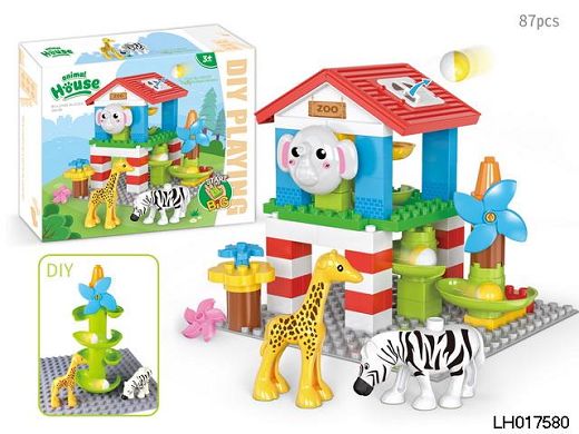 大象动物园滚珠滑道兼容乐高拼装大颗粒积木儿童桌面叠叠乐益智玩具(87PCS)