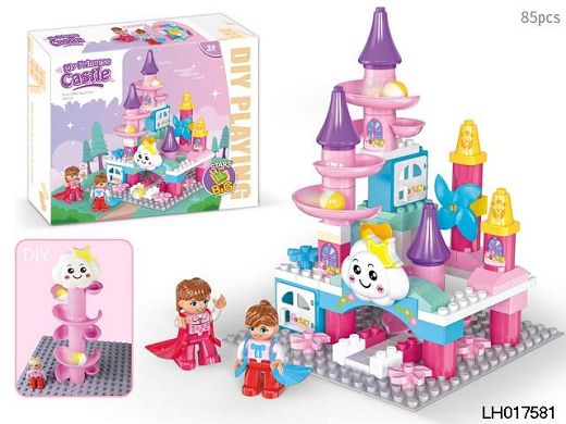 公主城堡滚珠滑道兼容乐高拼装大颗粒积木儿童桌面叠叠乐益智玩具(85PCS)