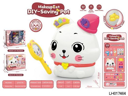 DIY储钱罐化妆猫,2色混装(A白色,B粉色)30PCS