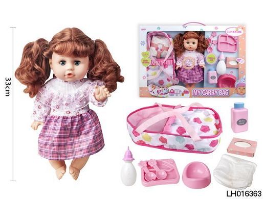 产品名称: 14寸吹瓶活眼娃娃,喝水小便功能 带配件,带6声IC 包3*LR44电池
