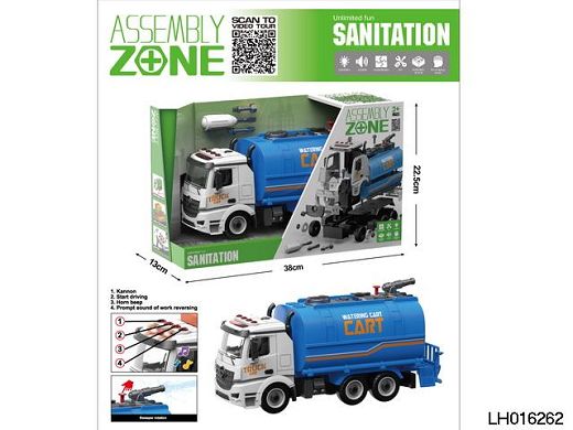产品名称: 拆装声光惯性模型车兼容小积木 城市洒水车
