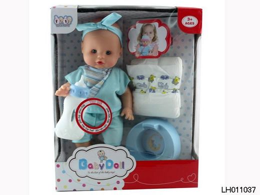产品名称: 12"喝水撒尿男娃连体套12声IC+奶瓶+尿布+尿盆
