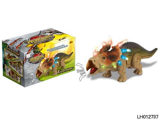 产品名称: 三角龙(英文)电动爬行恐龙,带灯光,带声音